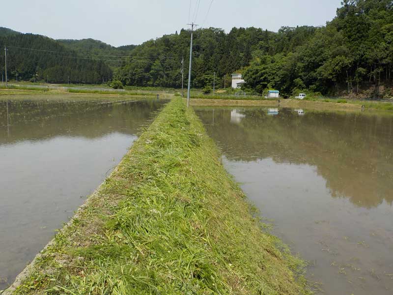 そして田んぼのあぜ道も除草剤を使わず、刈払機で刈ります。まだこの時期は雑草も柔らかくて刈りやすいですが、梅雨時期になるとぐんぐん大きくなってしまうので毎年たいへんです。除草はとにかく根気が入ります。