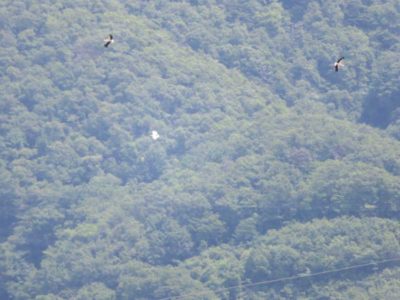 先日のコウノトリ。仲良く3匹で飛んでいるのではなく、どこからか飛来した2匹のコウノトリをいつもの1匹が追い回している写真です。コウノトリは日本にも数少なく珍しい鳥なのですが、今年は何匹も見かけます。巣にいる雌の方は卵を産んだらしいです。有精卵なら来月中には雛が見られるかもしれません。