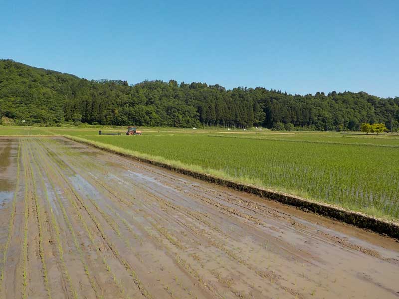 隣の田んぼはもう青々としていて、7月末には穂が出てくると思います。ただ、暑い時期に穂が出てしまうとおいしいお米にはなりにくいので、できるだけ涼しい時期に穂が出るように田植えをする時期を遅らせています。遅植えのデメリットは、台風や秋雨、イノシシの害に遭いやすくなることです。