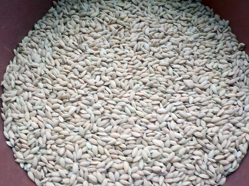 消毒後は、1週間ほど水に浸けて芽が出やすいようにお米に吸水させます。種籾用のお米と食用のお米は基本的に同じですが、1つ異なるのは種籾用は低温で乾燥させていることです。高温乾燥だと中の玄米が死んでしまうので水に浸けても発芽しません。発芽玄米を作ろうと思って玄米を水に浸けても発芽しない場合があるというのはこれが理由の1つです。