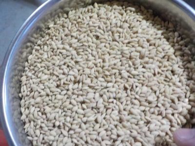 粒ぞろいの良いきれいな籾です。自分たちで栽培している無農薬栽培の籾だと茶色かったり、スカスカでつぶれていたりと、こんなにきれいな籾にはなりません。