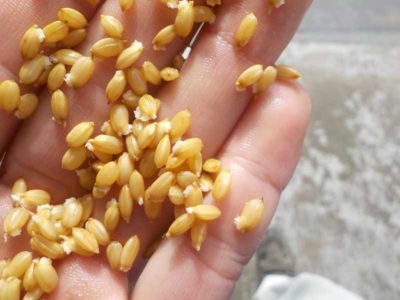 一週間ほど水につけておいた種もみを今度はちょっと温度を上げてぬるま湯に1晩ほど漬けます。種子の発芽には酸素も必要なので、シャワーで酸素を水に溶け込ませます。発芽玄米を作るときに、定期的に水の入れ替えをするのはこのためです。