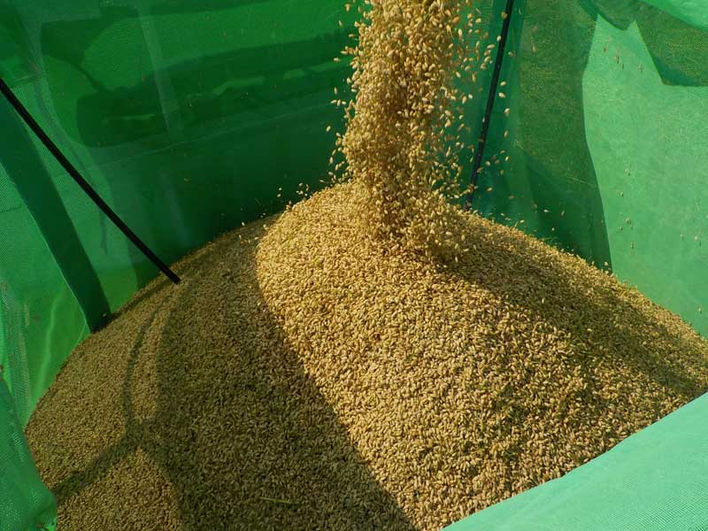 手伝いと言ってもコンバインに乗っている人以外はやることが無いので、刈り取ったモミの運搬が主な仕事。収穫1人、運搬1人いればなんとか稲刈りが出来てしまうのが現代の稲刈り。
