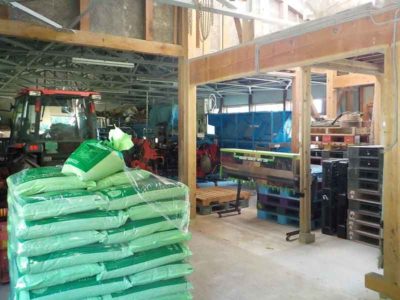 作業場は機械や肥料の物置になっているので、いらないものを片付けていきます。乾燥施設も一年のうち1シーズンしか使わないので、不使用期間は物置です。