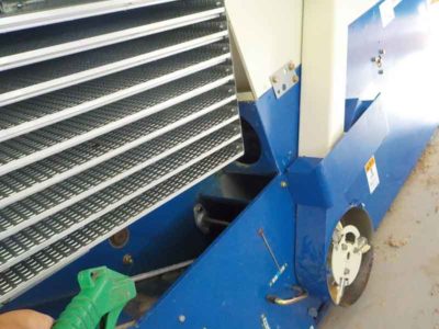次に、乾燥・調製用機械の清掃をします。昨年の使用後に綺麗になるまで清掃をして片づけをしたのですが、一年経つと結構なゴミが出てきます。食品生産に使用する機械なので、出来るだけ綺麗になるように心がけています。
