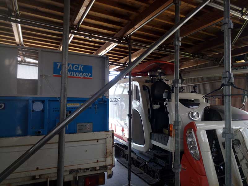 モミを運ぶコンテナとコンバインも清掃して準備完了。