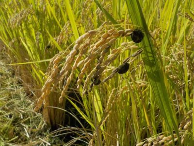 天然のこうじ菌なので、これを培養するとお酒や味噌、甘酒などもできるかもしれません。が、稲にとっては病気で、これに感染したお米は小粒で黒くなります。