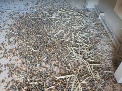 籾すり機にモミを入れる前に粗選機を通すのですが、藁クズと一緒に病粒も大量に出てきます。被害米は小粒なので網下米としてほとんど排出されるのでカメムシによる黒点米よりはマシです。