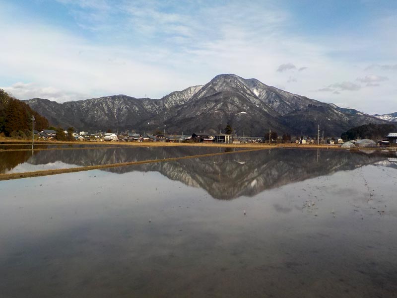 水を張った田んぼの土。近年は冬の間は田んぼを乾かす感じで水を張らずに管理をしていたのですが、今年は数年ぶりに水を張りました。