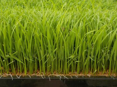 4月の最初に種をまいたハナエチゼンの苗ですが、現在のところ2葉12cm前後でしょうか。毎日これだけ暑いと生長も早いです。あと10日ほど育苗を続けて4月末に田植えの予定です。今のところ順調です。