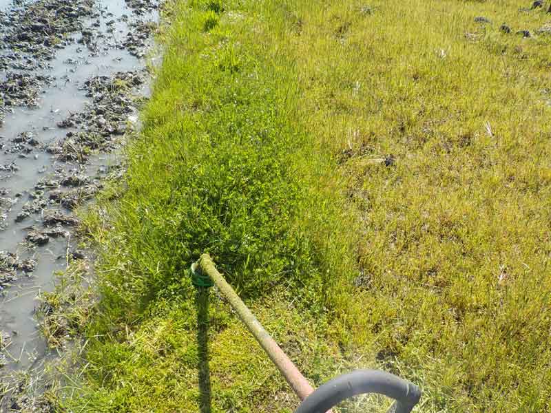 苗の生長も良いですが、田んぼの畦道の雑草の伸びも今年は良すぎです。そろそろ田植え前の1回目の草刈り開始。雑草にもさまざまなタイプがありますが、この時期はシロツメクサやカラスノエンドウなどの豆科の雑草が旺盛で意外とてこずります。
