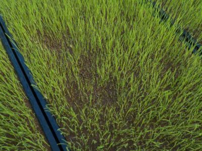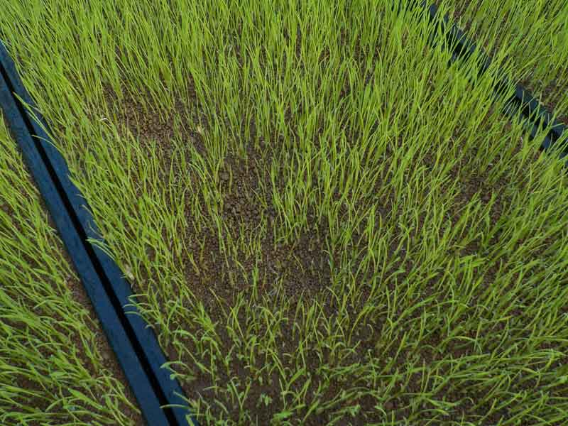 毎年よく発生するのがムレ苗や立枯れ。苗の一部が円状に枯れてしまう病気で、4月末~5月中旬の育苗期に特に多く発生しています。ちょうど季節が春から夏へ変わる時期で、天気や気温が安定しないのが原因かな?と思っています。プールに水を張ってしまえば水温の変化もゆっくりになるので以後は安心です。