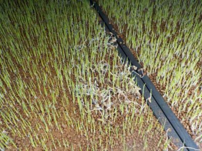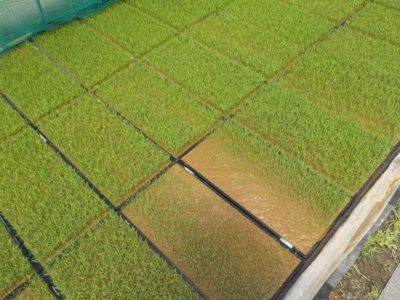 こちらはタンチョウモチ(もち米)の苗。スカスカですが無農薬栽培なので苗の段階から通気性が良くなるようにしてあります。