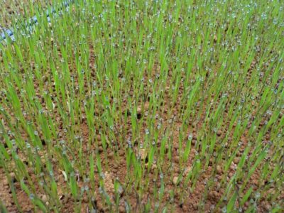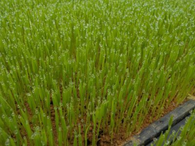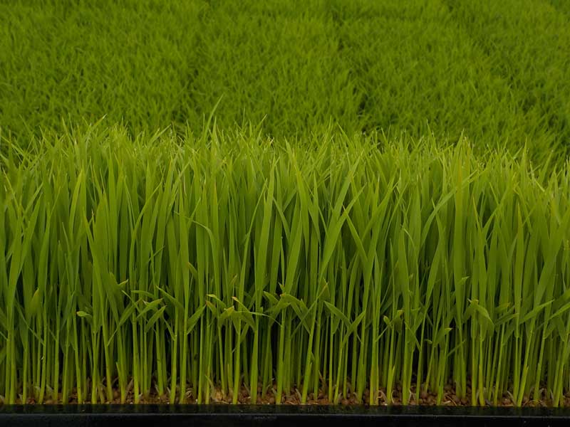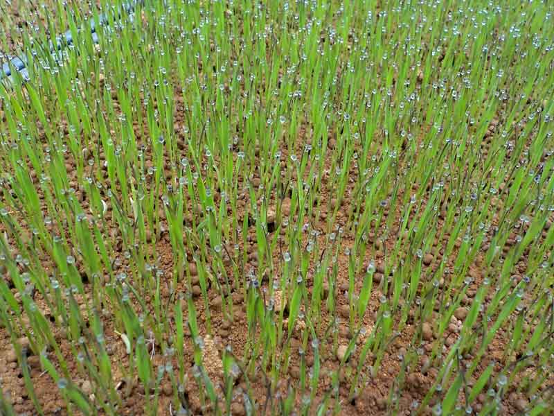 この緑の絨毯みたいなのは「にこまる」の苗。結構早めに植えるのですが、刈るのは一番最後になるくらい栽培期間は長い品種です。