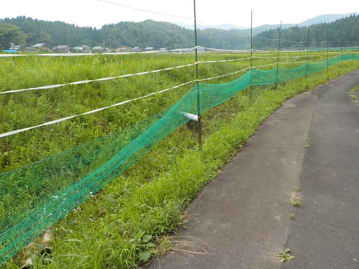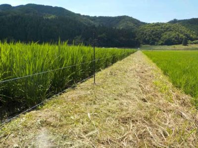 高山農園の田んぼのある地域は山沿いにあるので、毎年イノシシやシカの被害に遭います。動物の被害とは思っている以上にひどく、対策をしておかないと田んぼが1枚丸ごと全滅なんてこともあります。そのため、電気柵やワイヤーメッシュ、防獣ネットなどが欠かせません。