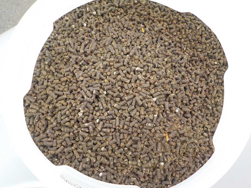 これは有機肥料。一言で表すと、生ゴミをバラバラにして固めて乾燥させたものです。肥料効率が悪いので、どうしても栽培の途中で今回のように追加で肥料を散布してあげる必要があります。この暑い時期だと臭いも結構きついです。