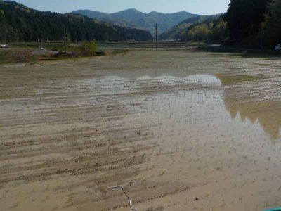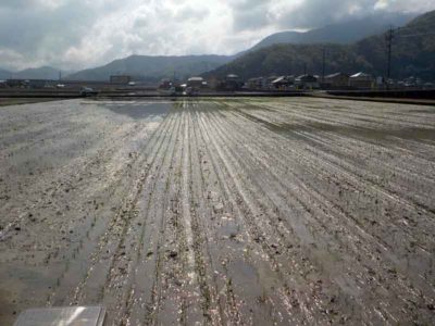 山間部の真四角ではない田んぼ。四角い田んぼはあっという間に植えることが出来るのですが、こういったいびつな形をした田んぼは何度も切り返して植えるのでとにかく時間がかかります。苗や肥料ももたくさん使うし、気分的にも疲れます。