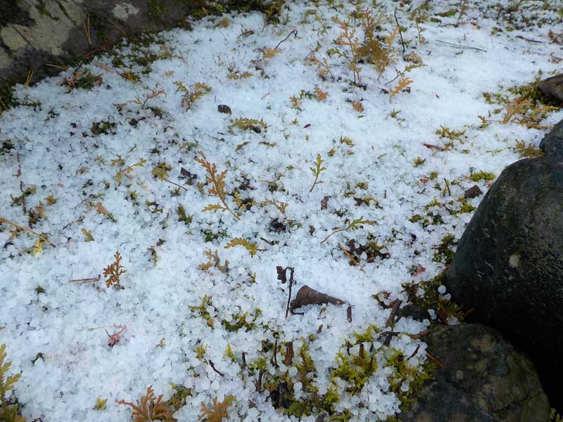朝起きたら庭がアラレで真っ白。