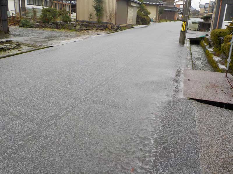 道路もミゾレ混じりの雨でドロドロ。気を付けないとよく滑ります。