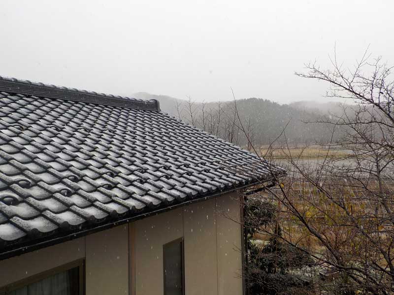 屋根瓦にもうっすらと雪が。