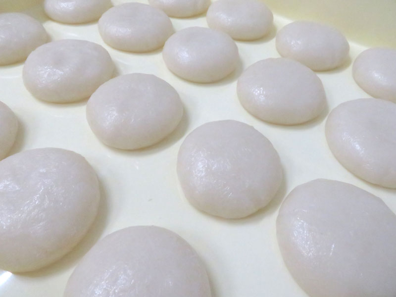 最後に丸く整形して冷めたら完成。福井県は切り餅ではなく丸餅です。まだ温かいうちは艶々輝いていますが、冷めてくるとしわしわに縮んでしまいます。