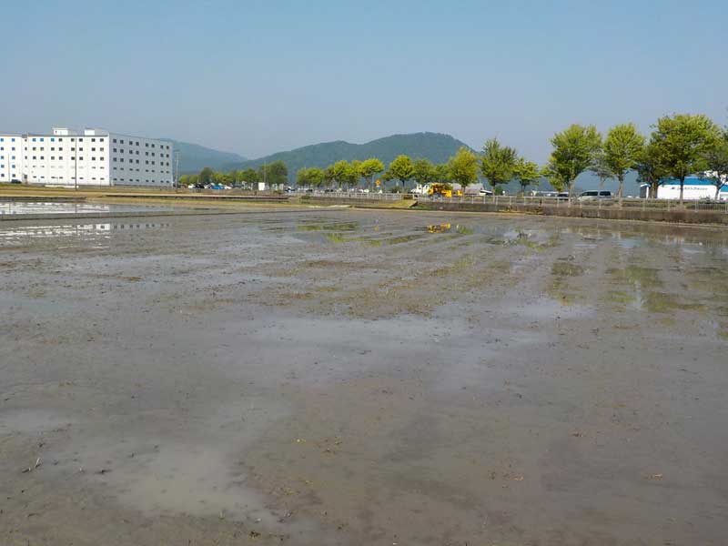 にこまるの田植えは大川沿いの開けた平野部です。畦がコンクリートなので、草刈りをほとんどしなくても良いのが素晴らしいです。