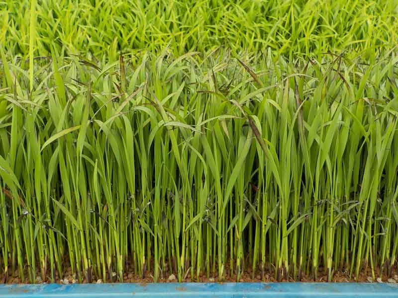 こちらは赤米?の苗だと思います。もう一種類緑米を作っているのですが、見分けがつかないほどよく似ているので・・・、たぶん合っています。