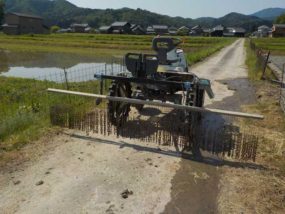 普通の栽培では、田んぼに除草剤を使用して草が生えないようにしますが、無農薬栽培ではそれができないので代わりに何かしらの方法で雑草対策をする必要があります。高山農園では主にチェーン除草を行っています。