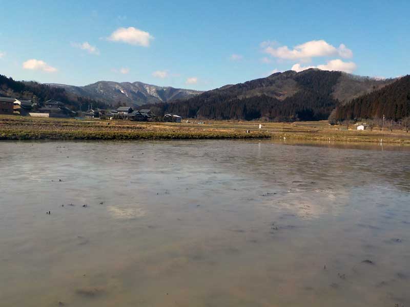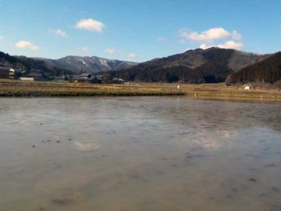 3月になり、雪もほとんどが消えました。朝晩は冷え込んで田んぼの水も凍っていますが、日中はだいぶん暖かくなりました。