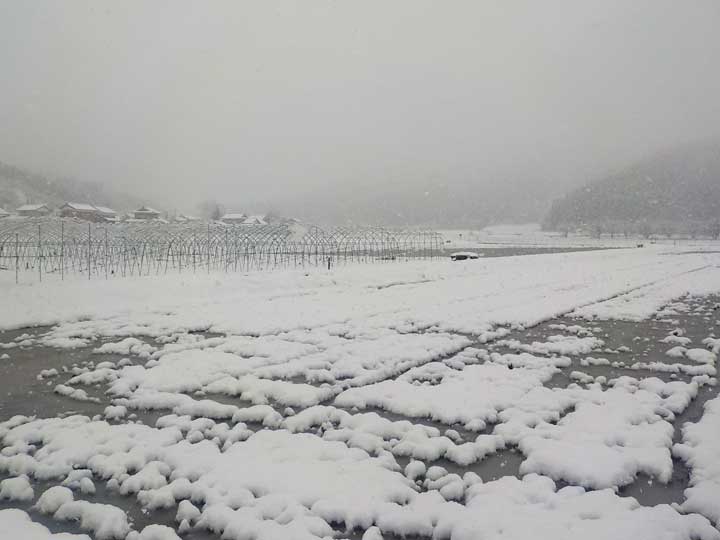 先週までは暖かく、今年はこのままの状態で行くのでは・・・と思っていたら急に寒くなって雪が降ってきました。