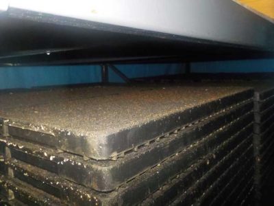 最後に種の上に土を軽くかける覆土をして終わりです。高山農園ではこの覆土にくんたん入りの土を使って、より通気性を良くしています。この育苗箱は数日重ねたままになるので、種への酸素の供給が僅かになります。完全に窒息してしまうと種は死んでしまい腐ってきます。そこから病気が・・・となるので、土の水分調整と通気性には慎重になります。過去には積んであった箱の下の方が全滅なんてこともありました。失敗をくり返しながら知恵と工夫を磨いていきます。