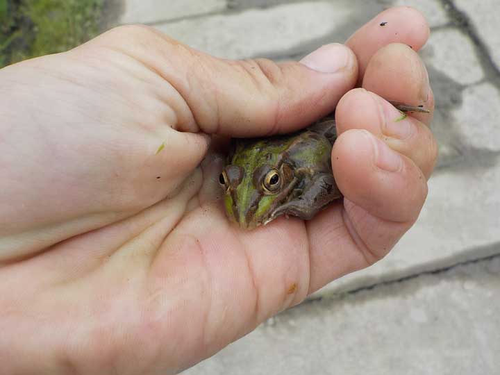 カエルです。体が大きく、苗を押しのけながら進むのでこのような筋ができてしまいます。あんまり大きな蛙だと苗を折ってしまうこともあります。