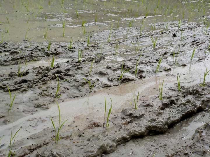 古代米と言っても田植えはいつもと一緒。ただ赤米と緑米と黒米を一緒の田んぼに植えたので、混ざらないようにするのがちょっと面倒でした。