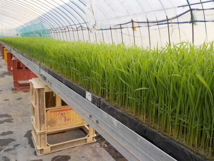 まず、明日は「あきさかり」という品種を植えます。この時期だと1日の平均気温は20度ぐらいあるので、種を蒔いてから20日で4葉目の頭がでてきます。4月の育苗とはまるで生長度合いがちがいます。