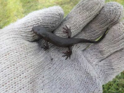 イモリ。田んぼなど水辺ならどこにでもいます。他のトカゲの仲間と違ってのっそりしています。