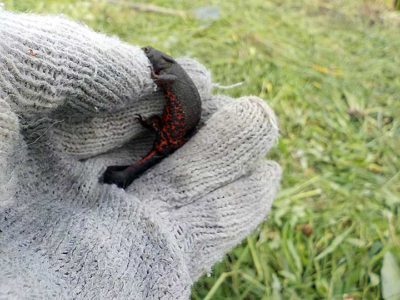 お腹が赤いのが目印。フグと同じ毒を持っているらしいです。