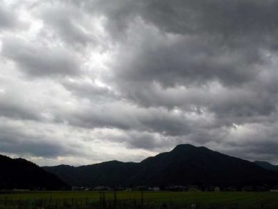 台風が来る前の空模様です。分厚い雲がゆっくりと南西の方向に動いています。台風は福井県の南側を通るとのことなので、時間帯によっては厳しい風雨になりそうです。