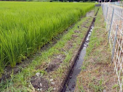 これは田んぼには必ずある水路です。用水路と排水路の2種類があります。