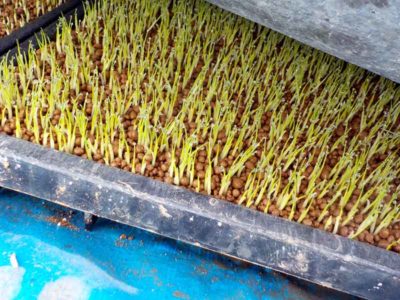 先日ビニールハウスに並べたハナエチゼンの苗。こんな寒さの中でもしっかりと生長しています。明日は晴れるので、シートをめくって一度陽に当ててやろうと思います。