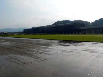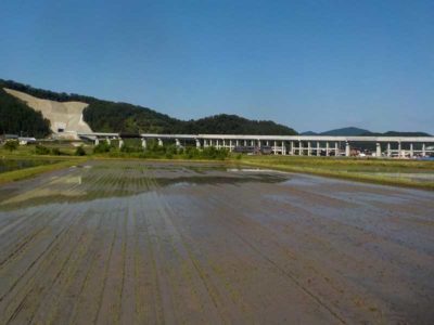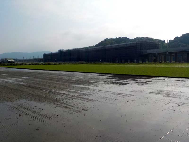一番最後は越前市の北にある田んぼ。もう少し行くと鯖江市という場所で、越前市の北から南と割と広範囲で稲作を行っています。面白いのが、土質が地域によって全く違うこと。砂地だと大昔は川だったり、赤土だとそれ程昔ではない頃に開墾した田んぼかな?と思ったりもします。