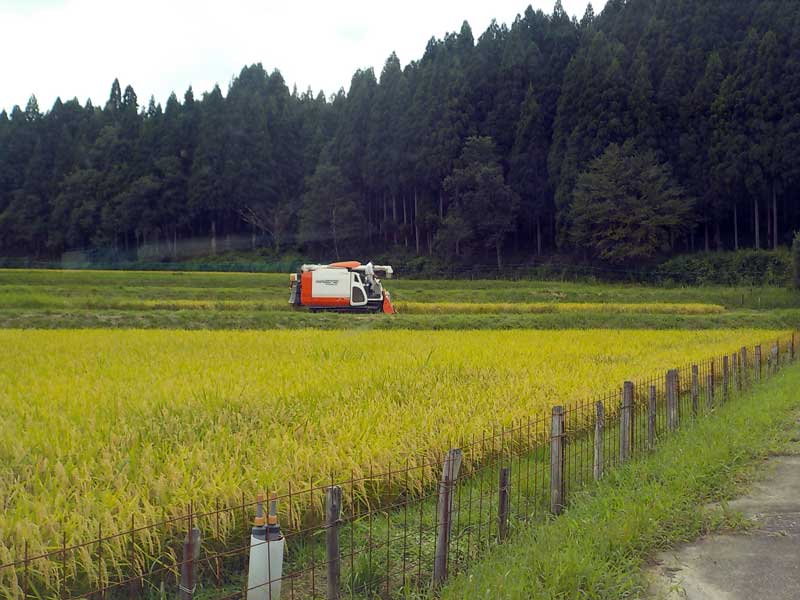 田んぼでの作業はコンバイン(稲刈り機)でザーッと刈り、