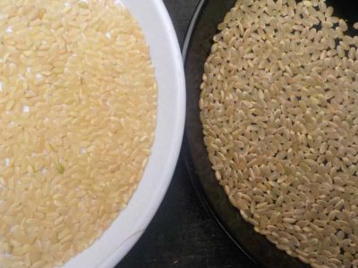 今年のハナエチゼンの玄米。いつもは選別をしても黒いお米や白いお米が取り除けないくらい大量に混じったりするのですが、今年はそういったお米が割と少なめです。カメムシが少なかったのと登熟期の気候が良かったのが良い結果になったのだと思います。