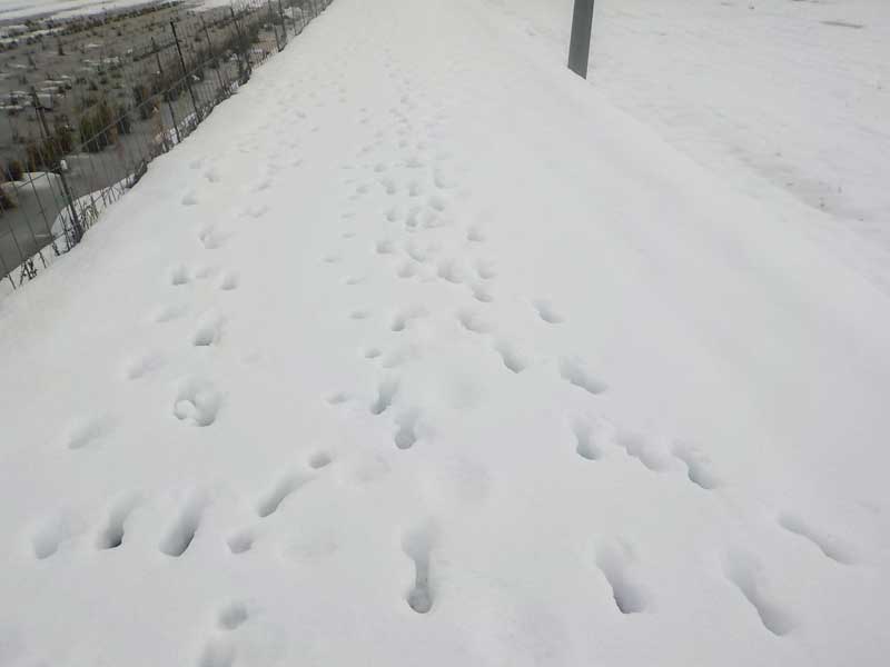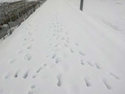 雪の積もった道路は鹿の足跡だらけ。山に餌が無いのはわかりますが、宅地のすぐ裏までやってくるとなると、畑の作物も食べられてしまうのであまり気分の良いものではありません。