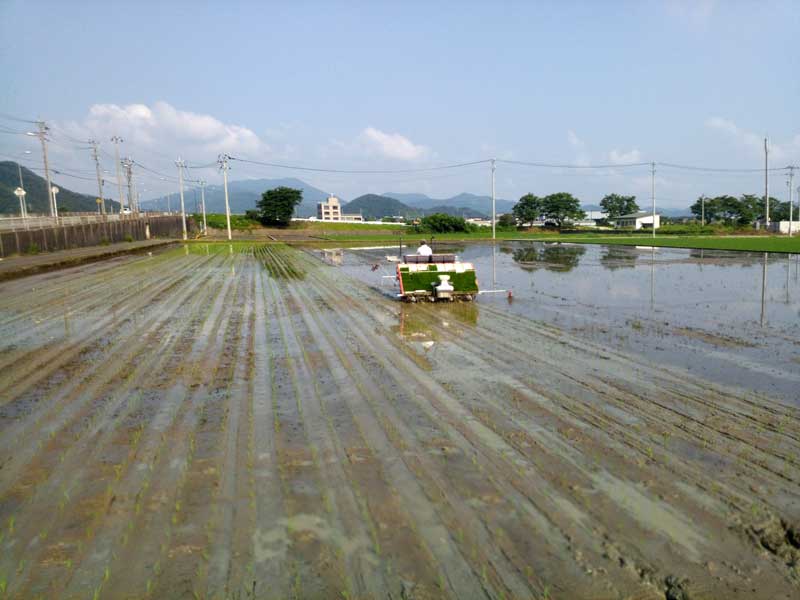 毎年少しづつ栽培面積が増えているので仕方がないのですが、だんだんと田植えが終わる時期が7月に近づいてきました。この頃になると、どの農家が最後まで田植えをしているかという話が田舎の世間話の話題の1つなのですが、うちよりもまだ残っている農家さんがいるようで、なんとなくチキンレースをしているような感じになってきます。