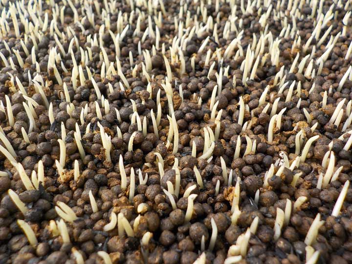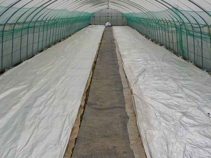 最後に保温と遮光用のシートをかけて終了です。土が十分湿っていれば水はやりません。芽が真っ白の状態では直射日光はきつすぎるので、2~3日ほどシートをかけて陽に慣らしてあげる必要があります。