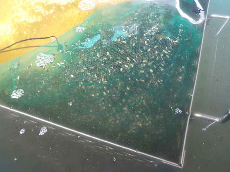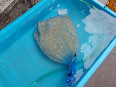 浮いた籾を取り除いて、あとは袋に詰めて流水で塩水を軽く洗い落とします。
