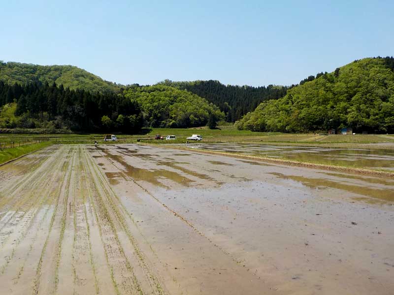 4月末。今年も田植えが始まりました。まだ朝晩は肌寒い時期ですが、今頃から植え始めないと田植えが終わるのが7月になってしまうので急ぎます。