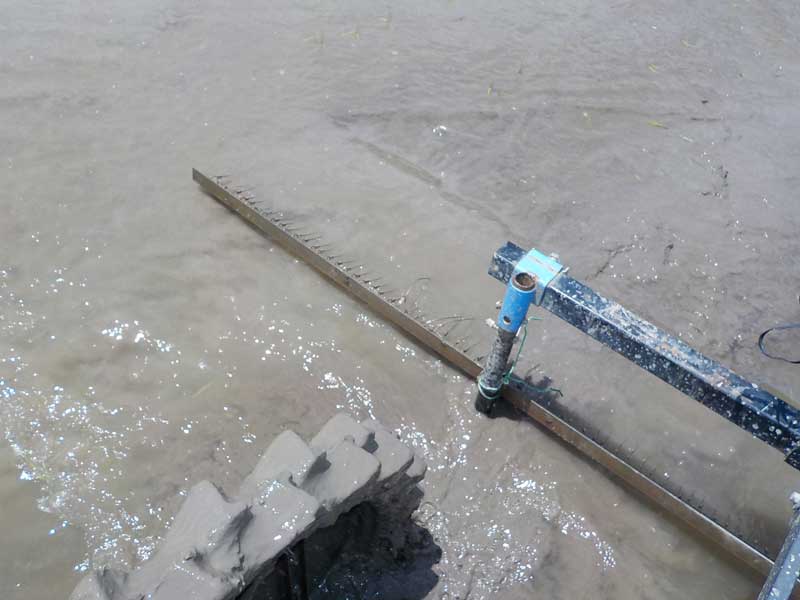 無農薬栽培のチェーン除草。今年は苗がほとんど見えなくなるくらい田んぼにたっぷり水を張ってチェーンを引っ張ってみました。苗がほとんど見えないので結構踏んでしまいましたが、収量は逆に増えました。