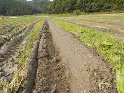 まだ暖かいうちに微生物の食べ物になる米ぬかなどを散布することで、固い繊維質の稲ワラも一緒に食べてもらいます。そうすることで、春には稲の栄養になるくらいまで細かく分解されます。