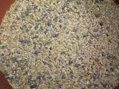 逆に意外だったのが、例年だと大量に発生するカメムシによる被害米。黒っぽいお米が被害米なのですが、今年は少ないというよりもほとんど無かったです。農薬不使用の田んぼでも同様で、なぜ?というような感じでした。梅雨時期に雨が降らなかったことや、7月8月と高温期が長期にわたって続いたことが原因だったのかはわかりませんが、カメムシが田んぼにほとんどいなかったみたいです。